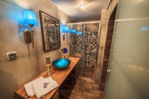 - łazienki: prysznic, umywalka, toaleta – przejście z mini spa